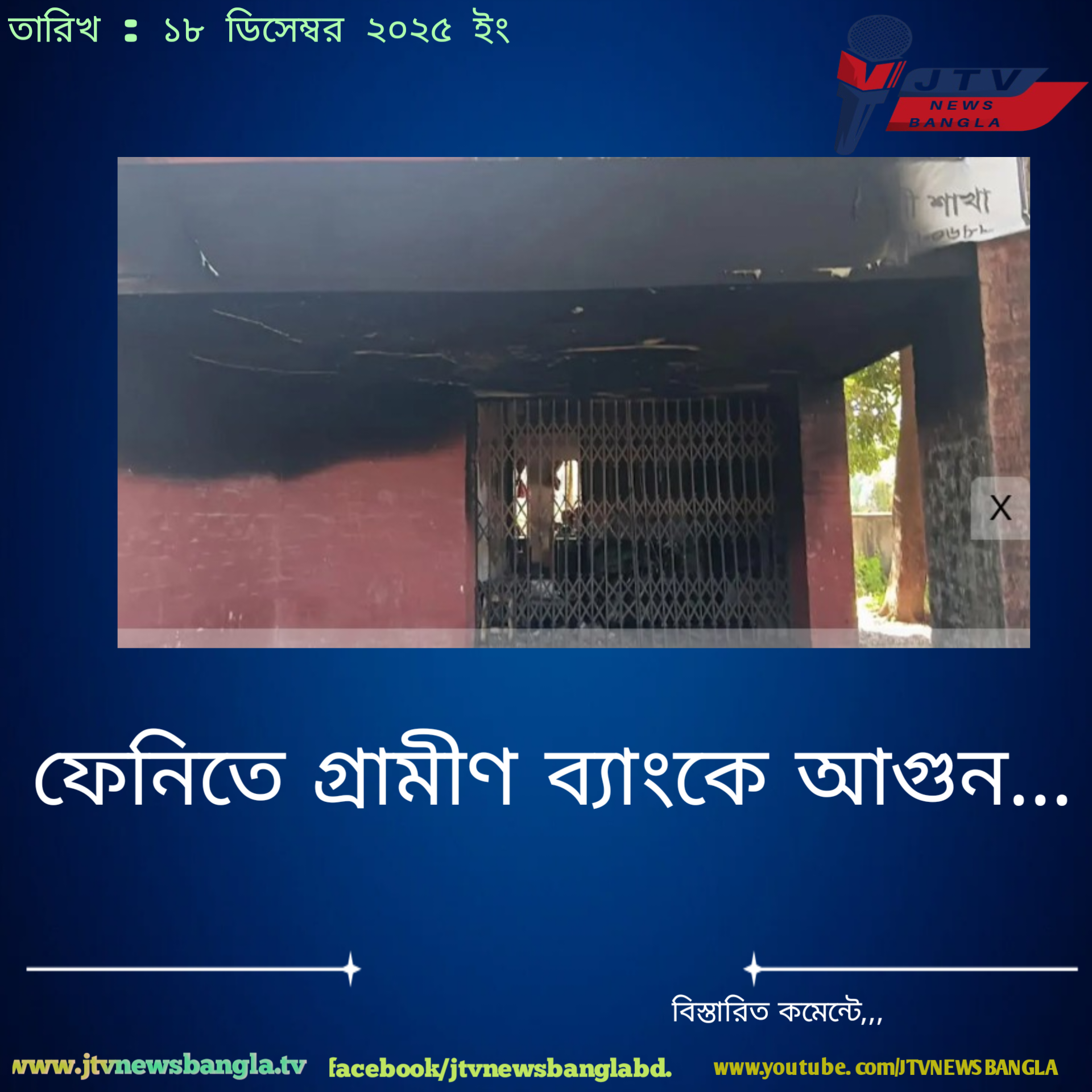 ফেনীতে গ্রামীণ ব্যাংকে দুর্বৃত্তদের অগ্নিসংযোগ, পুড়েছে মোটরসাইকেল ও আসবাবপত্র 📰 প্রিন্ট নিউজ , JTV News Bangla ফেনি,নিজস্ব প্রতিবেদক,